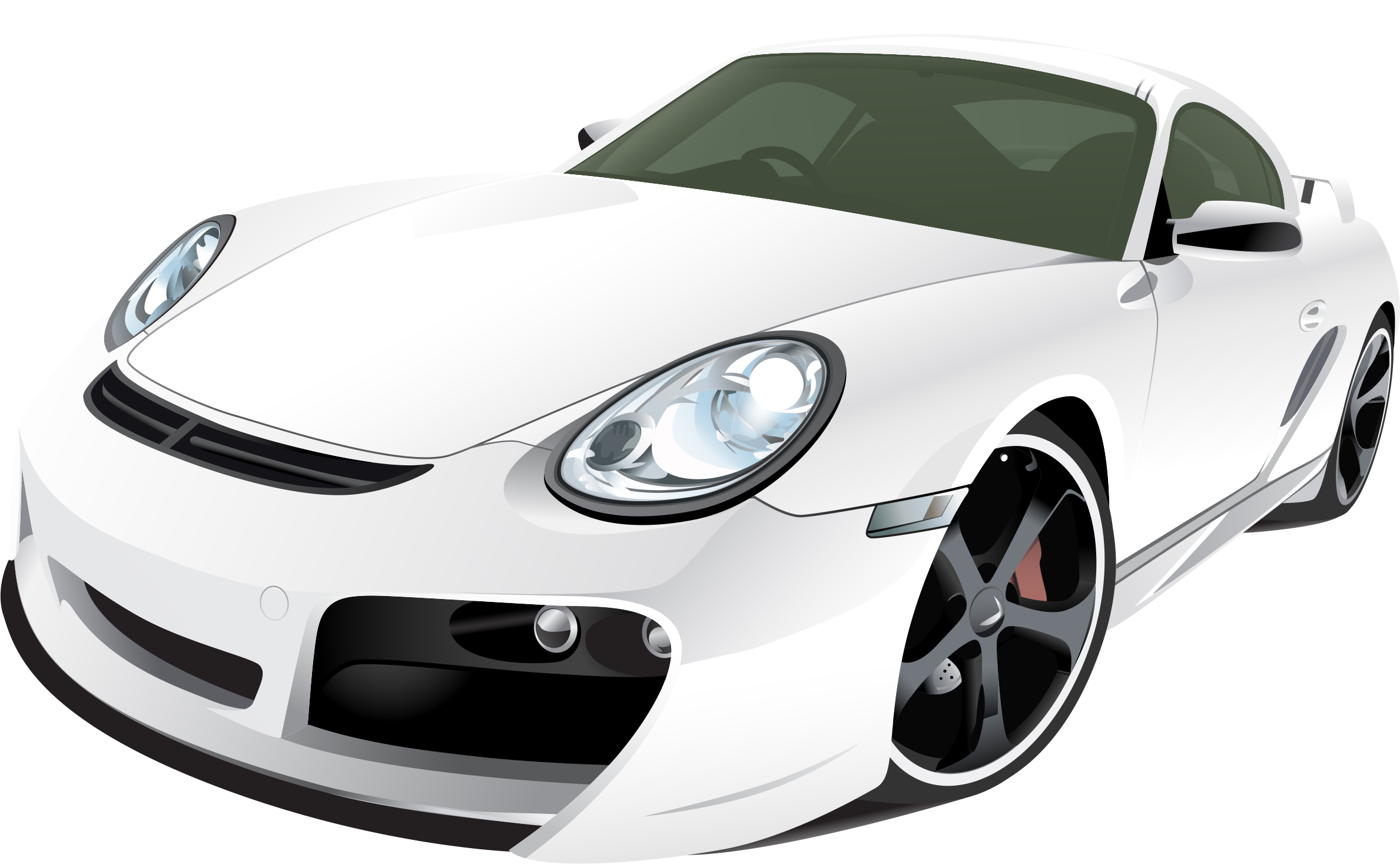 A digital drawing of a sports car with a white and green color scheme, featuring sleek headlights and black tires with custom rims.